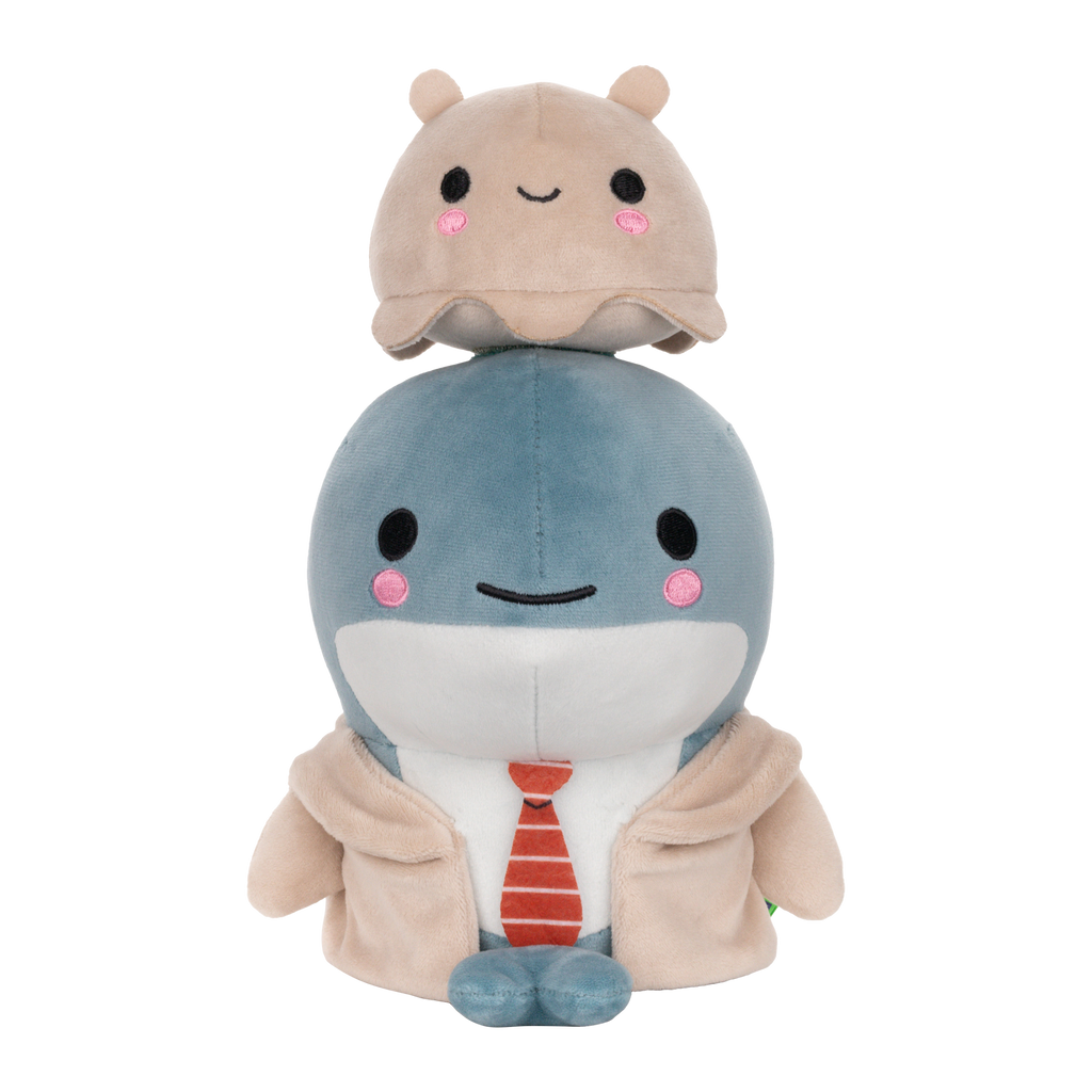 Meet Detective Shark! Your slightly clumsy, very lovable partner-in-crime-solving. He may not help you find your missing socks or solve the mystery of disappearing snacks, but he’ll make every mystery a lot more fun. Grab him as your sidekick, cuddle him while you investigate, and let the chaos (and cuteness) unfold.