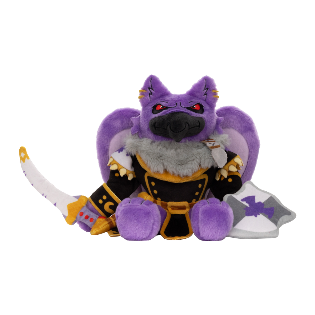 Lord Kass, a tragic hero to some and a nefarious villain to others, has found himself in his cutest iteration yet. Whispers in Neopia say this plushie might be cursed, but wouldn't you be too? With his super soft fur, fierce expression and battle gear accessories, the Lord Kass Plushie is sure to convince any Neopian to join the.. Darigan side!