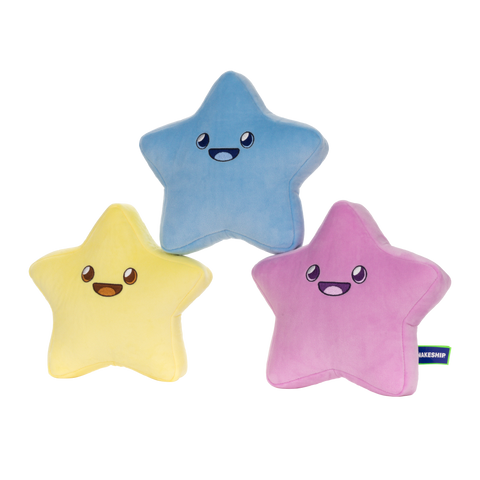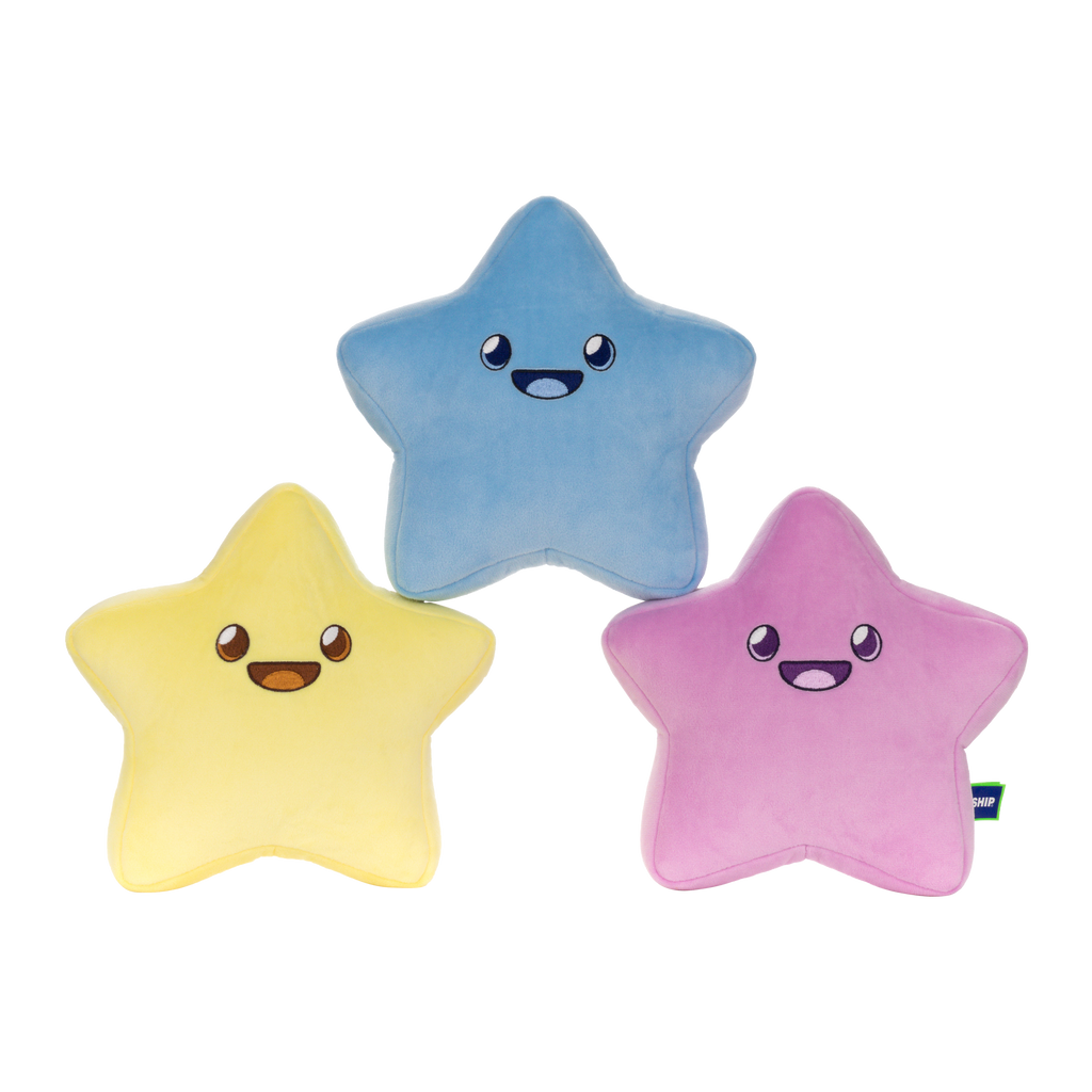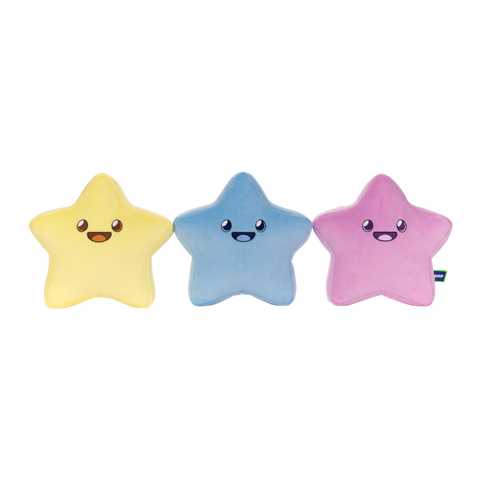 Get Starry-Eyed! The Starry Plushie is here to add a twinkle of Wizard101 charm to your life! Inspired by the Charming Starry Pet available in the Fanciful Fairy Kei Hoard Pack, these smiling stars can be three separate pieces OR velcro together in their typical constellation!